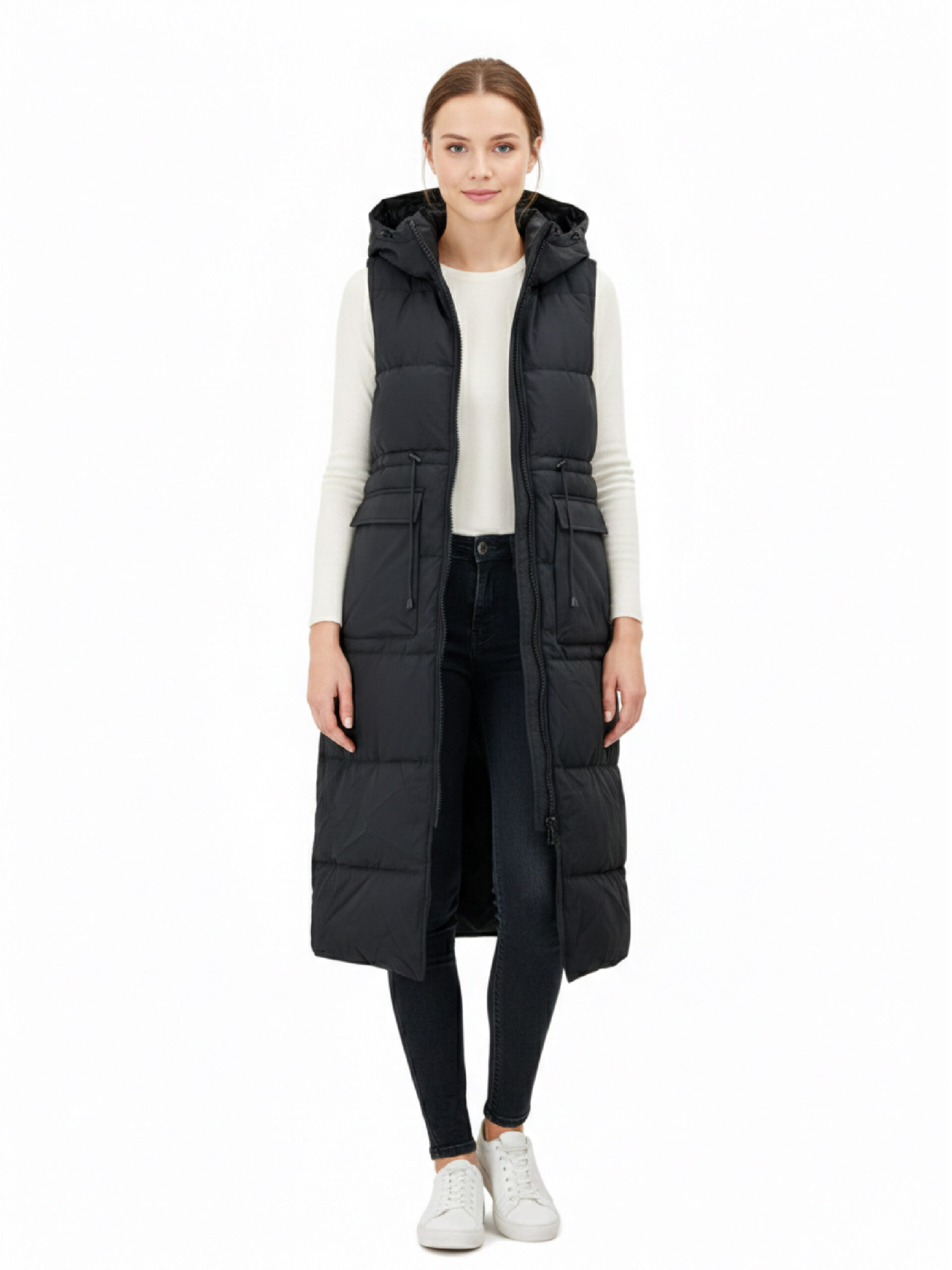 🧥 Chaleco Torino es un chaleco largo de pluma en color negro, diseñado para ofrecer abrigo y comodidad sin añadir peso.