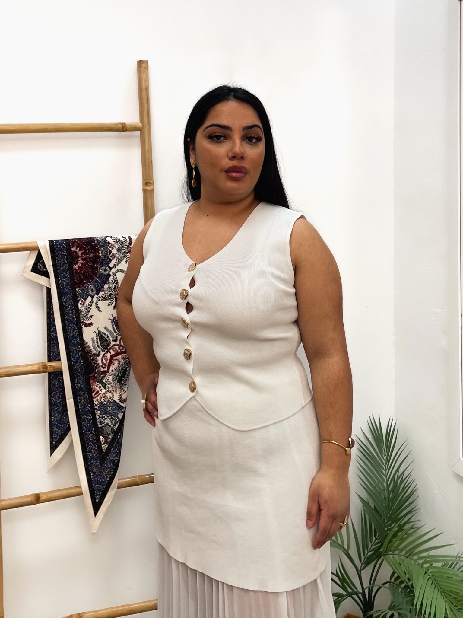 ✨ Conjunto Azalea es un conjunto de chaleco y falda de punto, disponible en varios colores, pensado para invitadas y eventos.