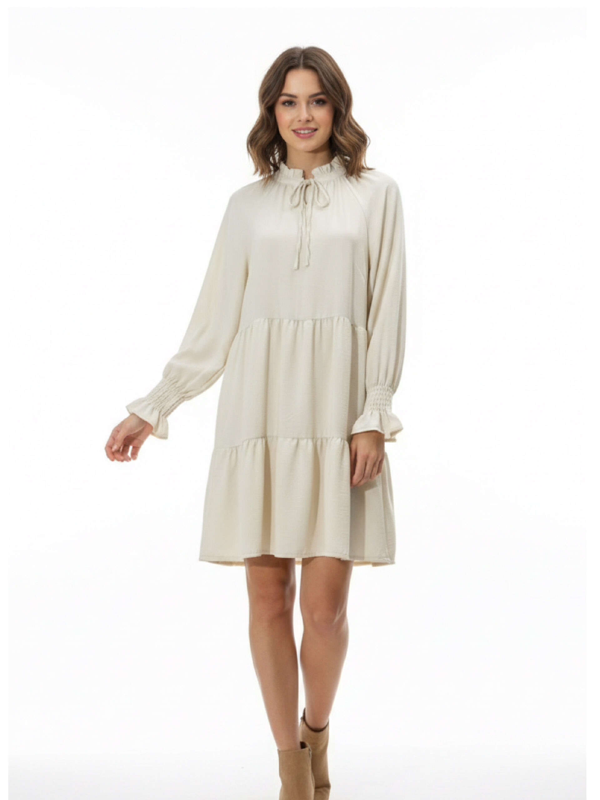 👗 Vestido Alba es un vestido midi en color beige con un elegante vuelo, diseñado para aportar movimiento y feminidad a tu look.